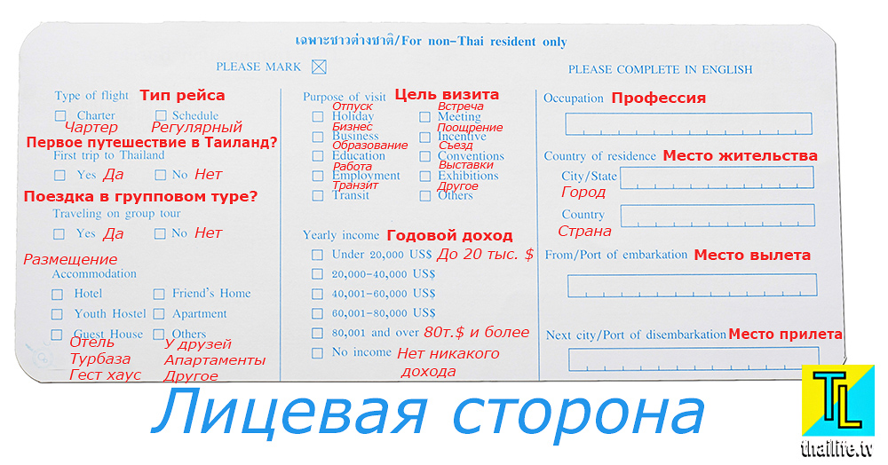 Предлагаем вашему вниманию подробную инструкцию по заполнению тайской миграционной карты. Для тех, кто не заполнял ни разу, возможно будет полезен наш перевод