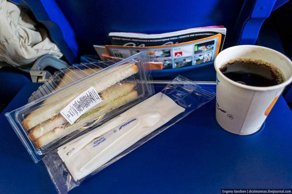 Когда маршрут предполагает полет до 3 часов, пассажирам предлагают только сэндвичи и выпечку
