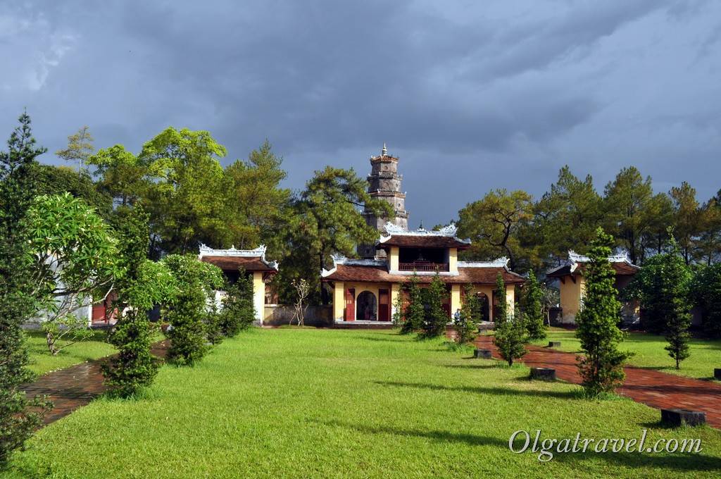 Пагоду Тьен Му. Она не похожа на обычный вьетнамский храм. Пагода имеет семь уровней: каждый обозначает новую степень реинкарнации Будды. Тьен Му считается символом Хюэ, поэтому посмотреть на нее нужно обязательно.