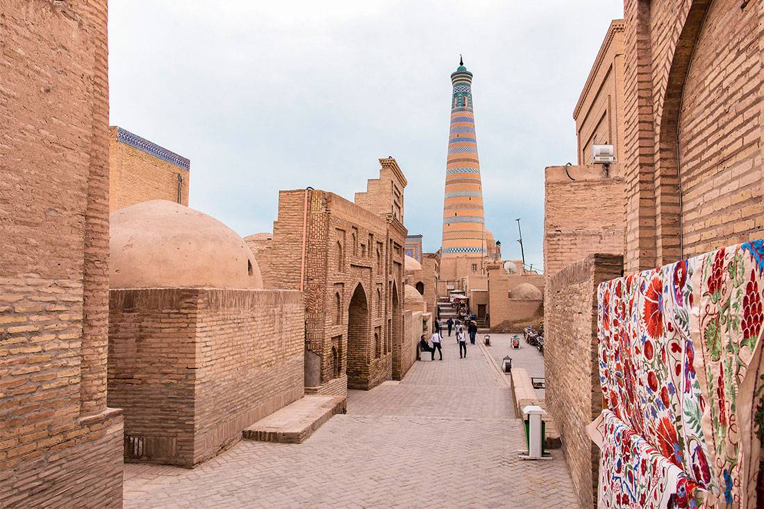 Зачем посещать. Самая заметная часть комплекса Ислам-Ходжа – высокий минарет (более 56 метров), который виден издалека. Он имеет характерную для среднеазиатской архитектуры форму и сужается к верху. Облицовка белого, синего, голубого, бирюзового и других оттенков придает минарету изящный вид. На уровне около 45 метров обустроена смотровая площадка, с которой можно полюбоваться городом.