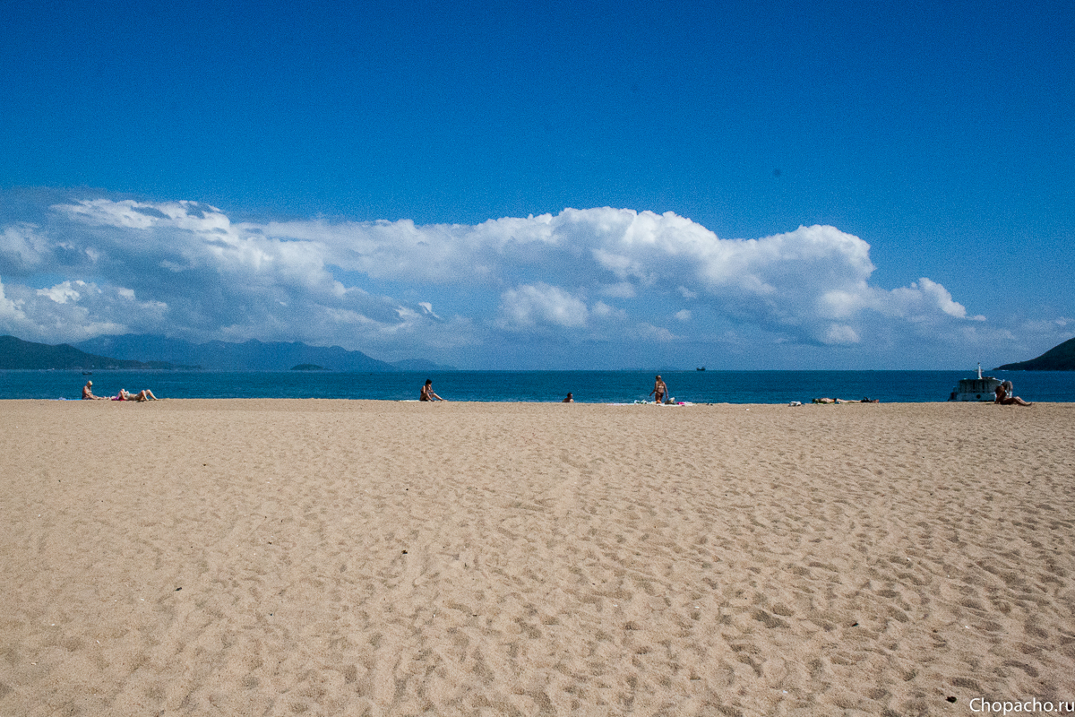 Вопреки распространенному мнению, что центральный пляж – значит грязный, пляж Нячанга вполне себе чистюля. Не идеальный чистюля, конечно. Приезжие любят оставлять после себя мусор, а власти не всегда прибираются. Но я могу сказать так – я не брезговала там купаться. Я побрезговала купаться на другом пляже – на о. Хон Там. Про него я расскажу чуть позже. Продавцы турпутевок, фруктов, свежих морепродуктов ходят туда-сюда, но особо не пристают.