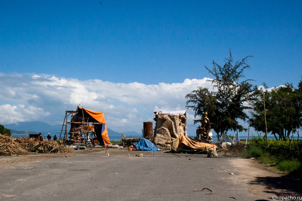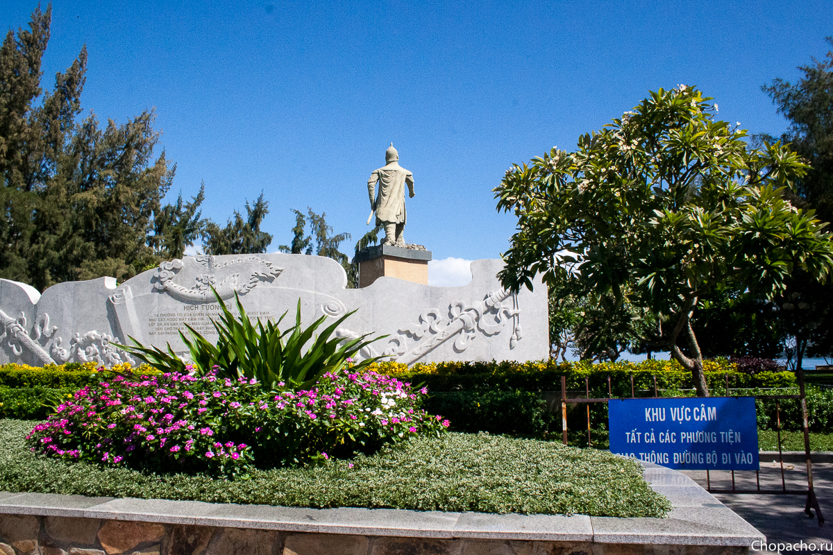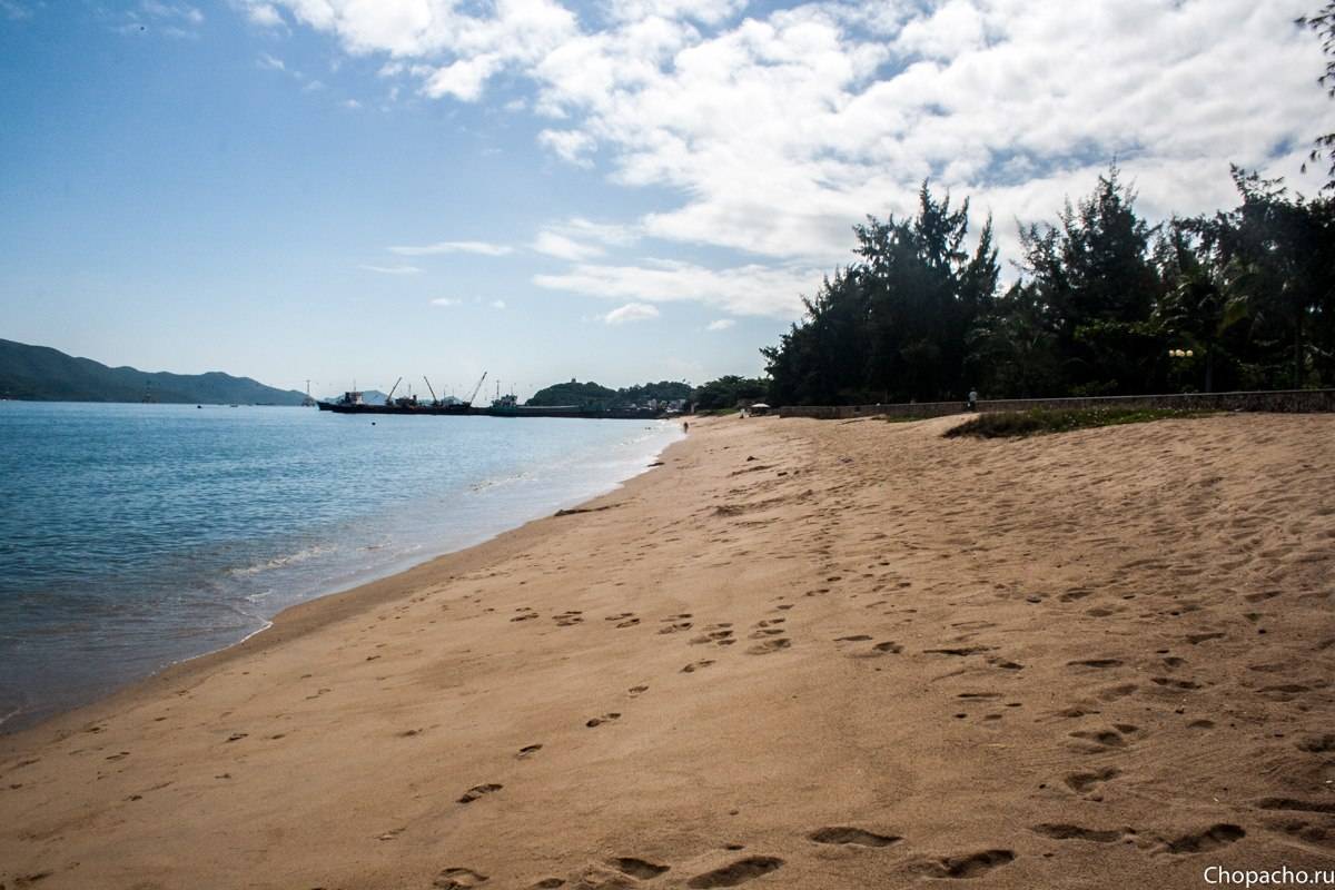 Самая непопулярная и неизвестная часть 7-ми километрового городского пляжа. Сюда туристы не доезжают. Здесь волны в непогоду еще меньше, чем у старого аэропорта. Опять же я бы не стала говорить, что значительно меньше, но все же. Посмотрите отметку на нашей карте Нячанга и узнаете, где находится это место. Если ехать из центра, то слева увидите памятник, подъезжайте к нему.