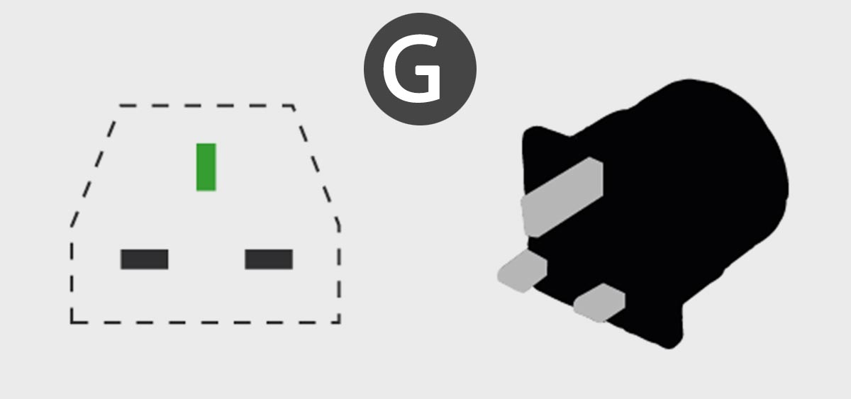 Для питания используются два горизонтальных прямоугольных штыря, а над ними сверху присутствует вертикальный штырь заземления. Стандарт не предполагает использование вилок без заземления, ведь в розетках установлены защитные шторки. При подключении вилки именно штырь заземления позволяет открыть защитные шторки и без него вилка просто не войдет в розетку.