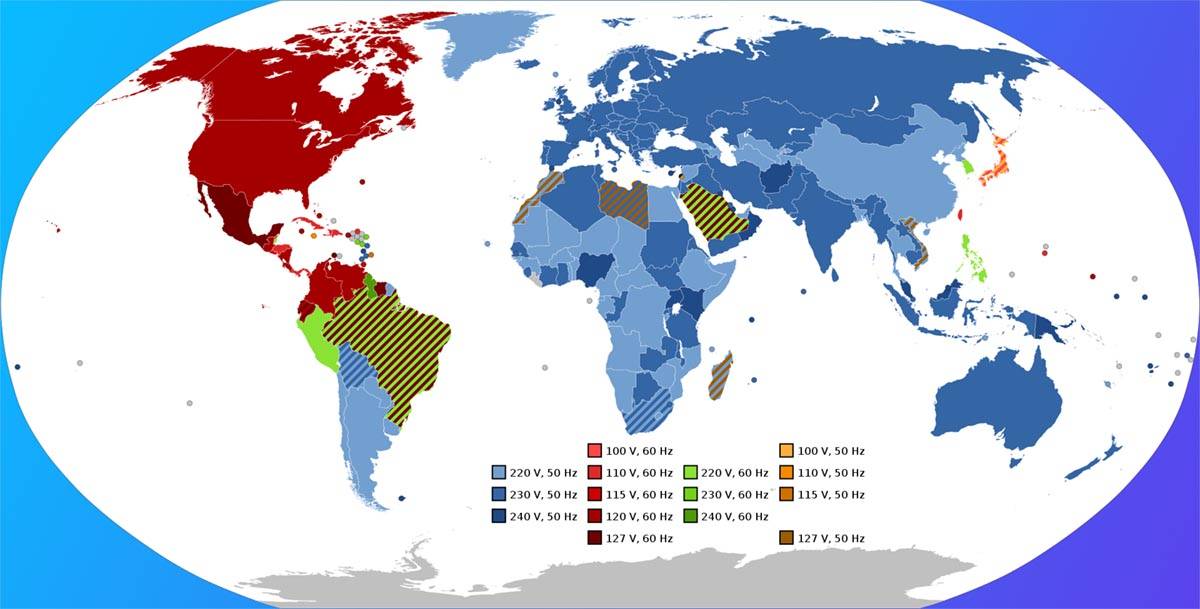 Во всем мире было принято два основных стандарта: американский 100—127 вольт 60 герц и европейский 220—240 вольт 50 герц. Многие страны использовали строгие утвержденные стандарты, но некоторые государства придерживались норм лишь примерно и использовали собственные значения напряжения и частоты в электросетях.