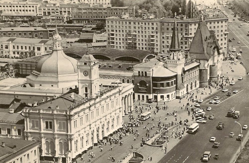 Казанский вокзал (бывший Рязанский) на Комсомольской площади появился в 1862 году. Это была довольно простое деревянное здание, которое уже в 1864 году заменили на каменное — тесное и скромное по архитектуре. Единственным украшением служила небольшая башня с часами.