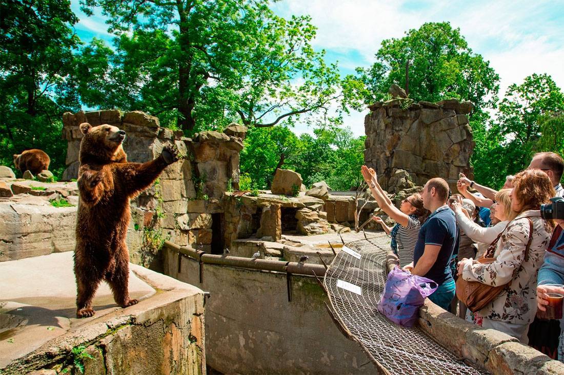 На территории сохранилось несколько довоенных зданий и красивый фонтан. Отдельно представлен огромный аквариум и удивительный террариум. Так же все гости стараются увидеть легендарного говорящего ворона по кличке Яша. Этот живой экспонат настолько интересен, что однажды его даже похитили из зоопарка. Через некоторое время птицу удалось вернуть, и он до сих пор продолжает удивлять посетителей.
