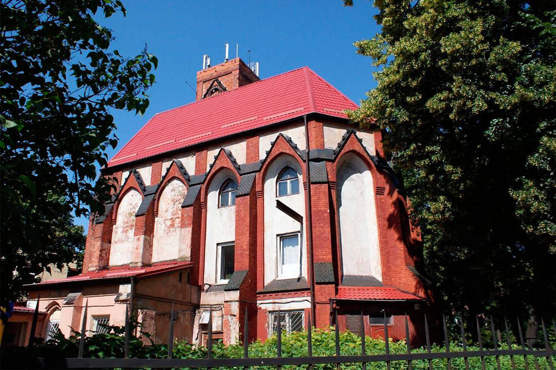 Кирха Св. Адальберта представляет собой настоящую архитектурную загадку. Над проектом работали лучшие архитекторы того времени, место было выбрано с учетом того, чтобы кирха хорошо просматривалась со всех сторон улицы.