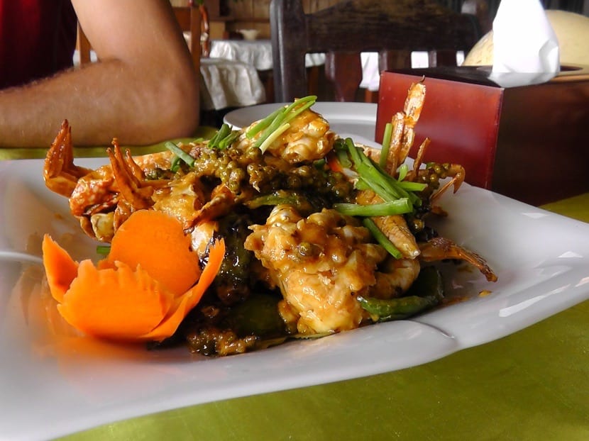 Жареный краб – еще одно фирменное блюдо прибрежного городка Кеп в Камбодже. Рынок живых крабов известен тем, что жарят его с добавлением зеленого перца Кампот, местного производства. Ароматный перец Кампот известен во всем мире, хотя зеленый перец горошком можно попробовать только в Камбодже. Многие говорят, что именно ради этого блюда стоит съездить в этот город.