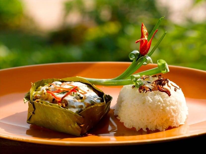 - Блюдо — «Амок» (Amok) — может быть из мяса рыбы, птицы, с овощами под соусом карри с кокосовым молоком. Часто подаётся в кокосовом орехе. Очень популярное блюдо среди туристов, и к нему еще может подаваться рис.
