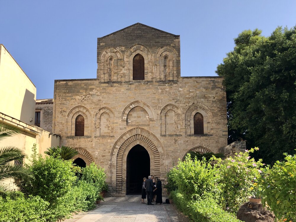 В двух шагах от Спазимо, в маленьком саду за красивыми барочными воротами прячется достопримечательность с не менее интересной судьбой. Эта церковь совсем небольшая, но заметно отличается от окружающих зданий — она построена в арабо-нормандском стиле. В 1150—1190 гг., когда арабы уже покидали город, по заказу новых властей арабские каменщики построили христианский храм на месте прежней мечети, поэтому архитектура церкви — узнаваемо арабская, хотя здесь размещался монастырь католического ордена цистерцианцев. Позже церковь перешла под знамя рыцарей Тевтонского ордена, которые дали ей имя Пресвятой Троицы, сильно перестроили ее, расширили территорию и добавили госпиталь для паломников, которые через Сицилию шли в Святую Землю.