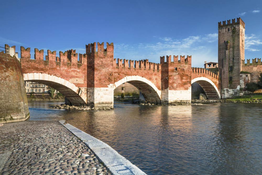 Длинный старинный мост, словно радуга, перекинут через реку Адидже. С одной стороны моста расположена старая караульная башня. Во время Второй Мировой войны, мост был взорван, но его снова восстановили.