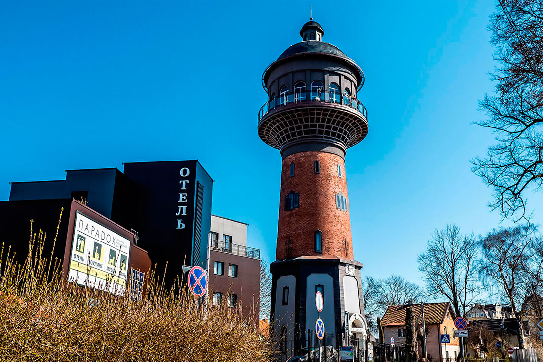 Если вы хотите посмотреть на город с высоты, отправляйтесь к водонапорной башне. Такие есть и в Светлогорске, и в Балтийске, однако здесь на нее можно свободно подняться. Смотровая площадка располагается на высоте около сорока метров, однако с подъемом проблем не возникнет: в башен работает лифт.