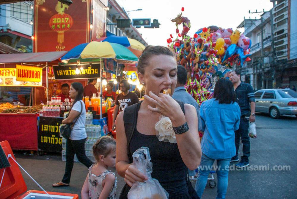 У Вата Пхотхарам работал праздничный рынок с массой вкусностей. Таких кханом бианг, как на этом рынке, я не пробовала нигде! Потрясающий крем! Ну, вы видите по моему выражению лица.