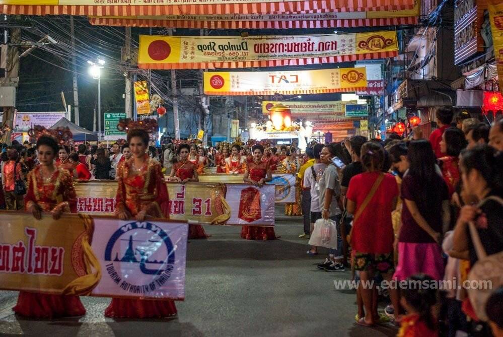 Во-первых, где празднуют: главная сцена с шестом для дракона была установлена на пересечении Sawanvitee и Matulee Rd. Процессии двигаются со стороны озера.