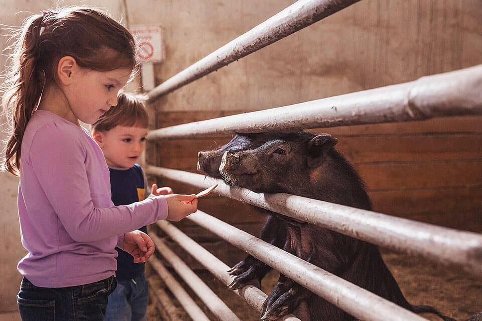 Это контактный зоопарк, что доставляет особенную радость детям. Некоторых животных можно гладить, кормить, то есть, непосредственно общаться с ними. А живут в зоопарке многочисленные обитатели животного мира. Страусы и буйволы, ламы и ослики, олени и верблюды, козы и карликовые свинки, белки, павлины, нутрии и многие другие питомцы.