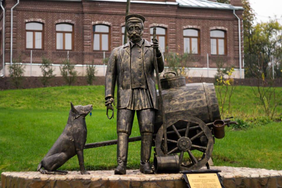 В благодарность скромным труженикам-водовозам и установлен памятник – как раз в том месте, где они обычно набирали из реки воду. Рядом с водовозом – большая бочка и верная собака. Те, кто пришёл взглянуть на памятник, могут опустить деньги в кружку, которая находится рядом. Собранные средства идут на благотворительные цели.