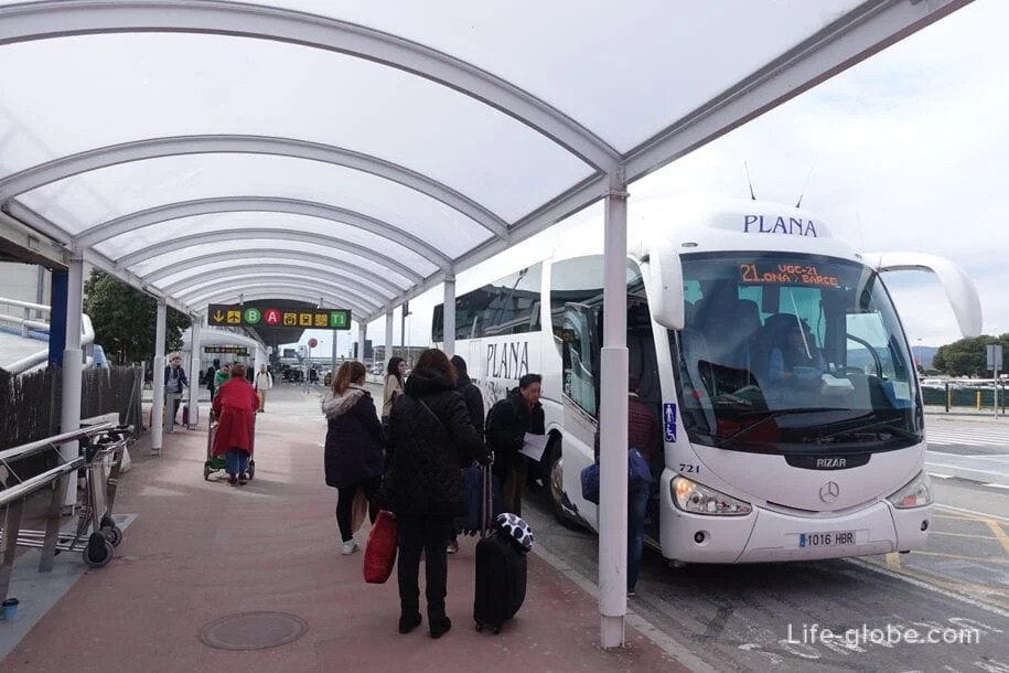 Из второго терминала аэропорта Барселоны автобусы стартуют с автобусной остановки, расположенной чуть правее от выхода из здания аэропорта. Выходим, поворачиваем направо и идем прямо.