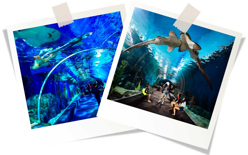 Океанариум проведет вас через семь различных сред обитания, где вы не только сможете наблюдать за морской жизнью сквозь толстое стекло, но и встретить её лицом к лицу с помощью квалифицированных инструкторов. Также вы сможете покормить пресноводных рыб и получить услугу рыбного спа.