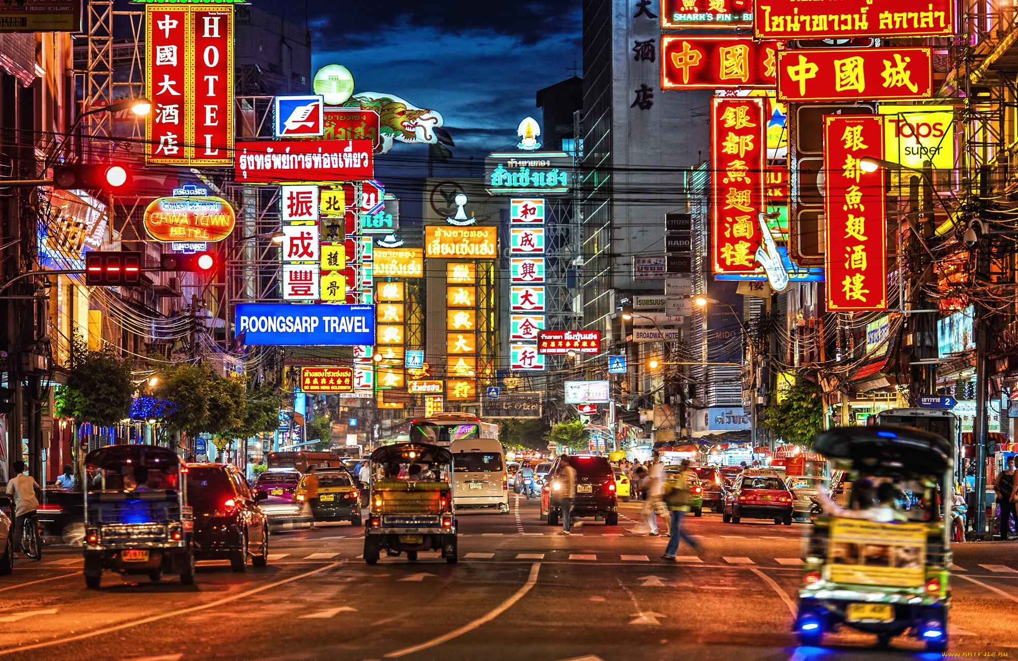 - Прогулки по извилистым улочкам района помогают проникнуться атмосферой «бангкокского Китая». Здесь можно обнаружить жизнь, которая не осталась, даже в самом Китае. Переулки украшены знаменитыми красными фонариками и изображением драконов. Прямо на улице встречаются потомки китайцев, сбежавших в свое время от Мао Цзедуна.