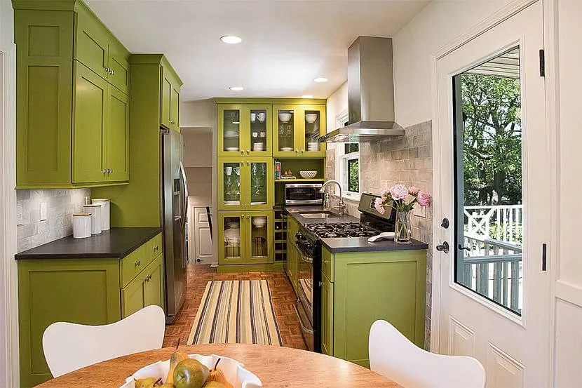 Эта кухня требует такого же подхода, как кухня на Востоке. Используем тут все оттенки зеленого, коричневого, бежевого, немного голубого или синего. А вот красного и белого избегаем.