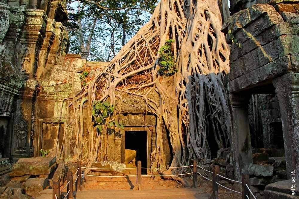 Увидеть деревья, обнимающие руины, прилетают туристы со всего мира, поэтому не надейтесь на «безлюдные» фотографии. Даже на рассвете здесь со всех стороны раздаются щелчки фотоаппаратов. Восход солнца многие путешественники встречают на берегу озера перед Ангкор Ватом: башни храма в утренних лучах выглядят невероятно!