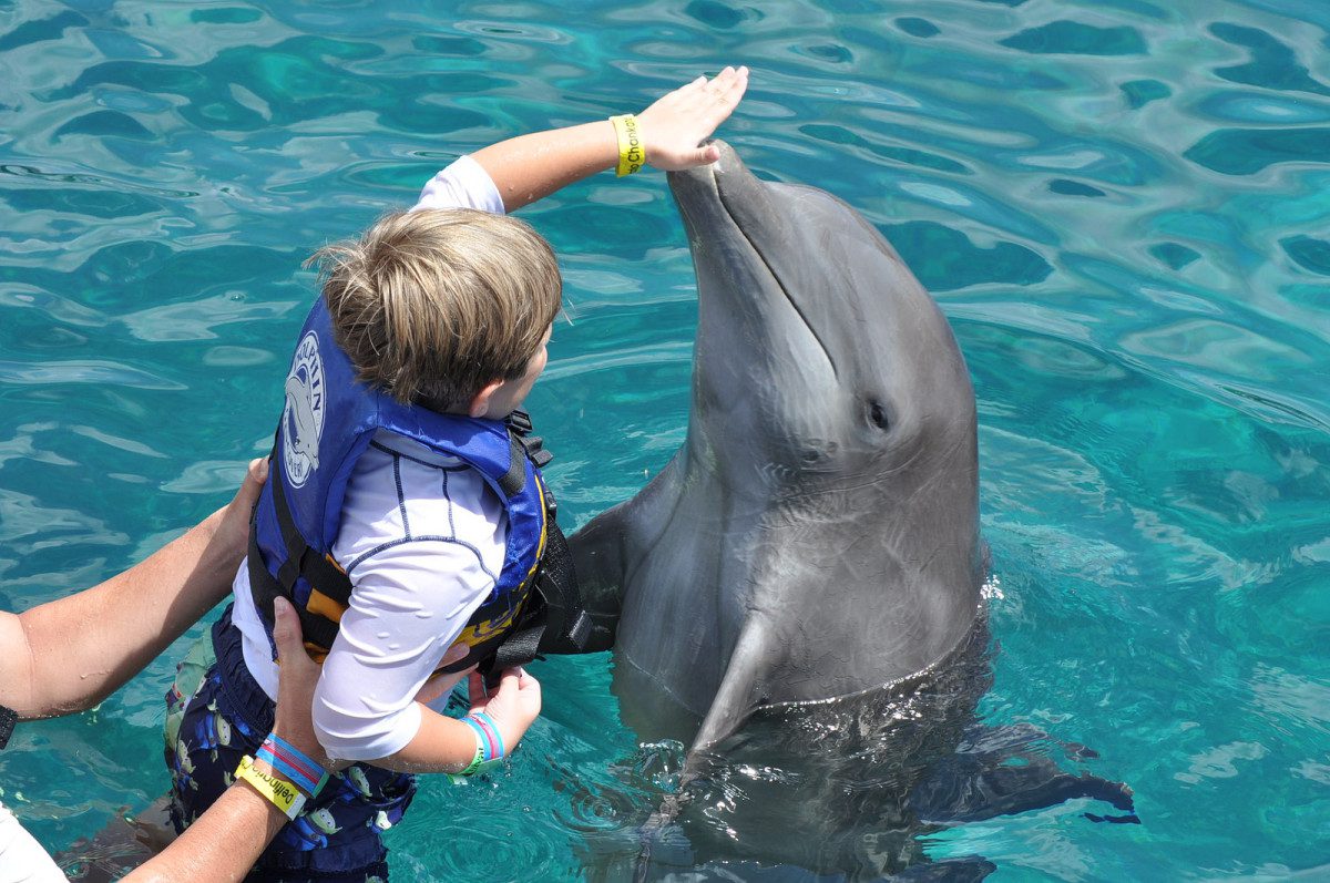 - Групповые плавания с дельфинами. Набирается до шести человек, желающих пообщаться с животными поближе. В сопровождении тренера туристы спускаются в бассейн. Общение, игры, кормление продолжаются полчаса. При этом нужно учитывать, что животные несколько минут будут привыкать к незнакомым людям и только потом проявят свою игривость. К плаванию допускают взрослых и детей 12 лет и старше. Цена билета 69 долларов для детей и 79 долларов для взрослых.