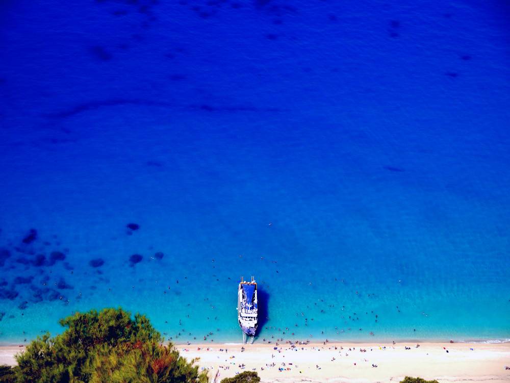 Но для тех, кто не хочет заниматься физкультурой таким образом, но всё же хочет попасть на пляж Эгремни, есть доставка тел из порта Василики на судне прямо на пляж (вид сверху):