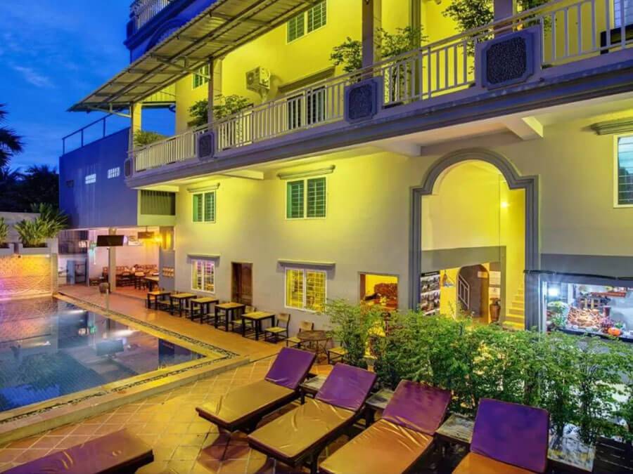 - De Sonyn Boutique — находится в десяти минутах ходьбы от главной развлекательной улицы города Pub Street и в пятнадцати минутах езды от аэропорта. Отель относительно молодой, построен в 2012 году, но уже успел заслужить место в списке любимых отелей у туристов. По размерам — это мини-гостиница: здесь 16 номеров, сад, бассейн открытого типа и ресторан для гостей.