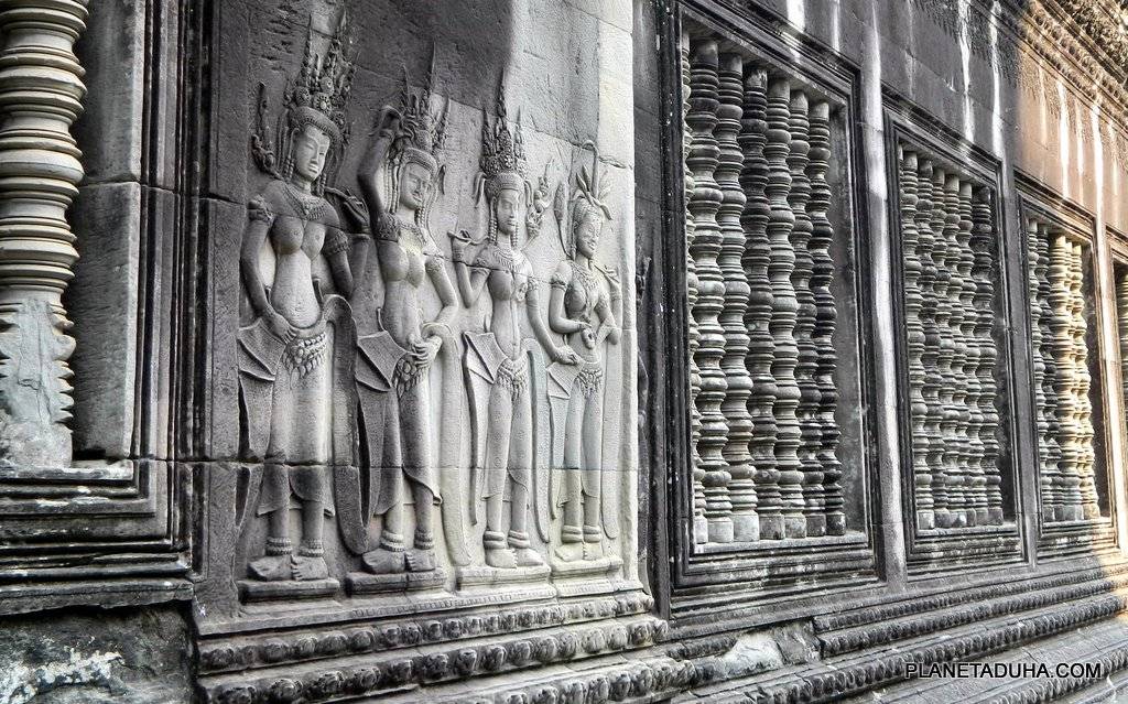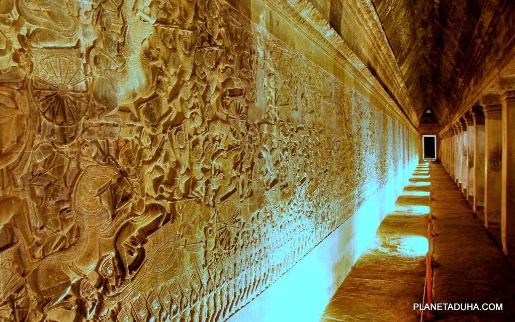 Великолепные барельефы на внешних стенах Ангкор-Вата