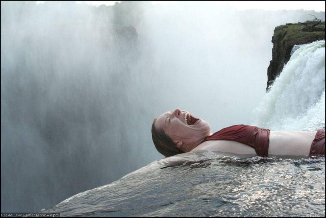 Лежишь в бассейне, а на расстоянии вытянутой руки вода падает вниз с высоты 128 метров. Зрелище впечатляющее.