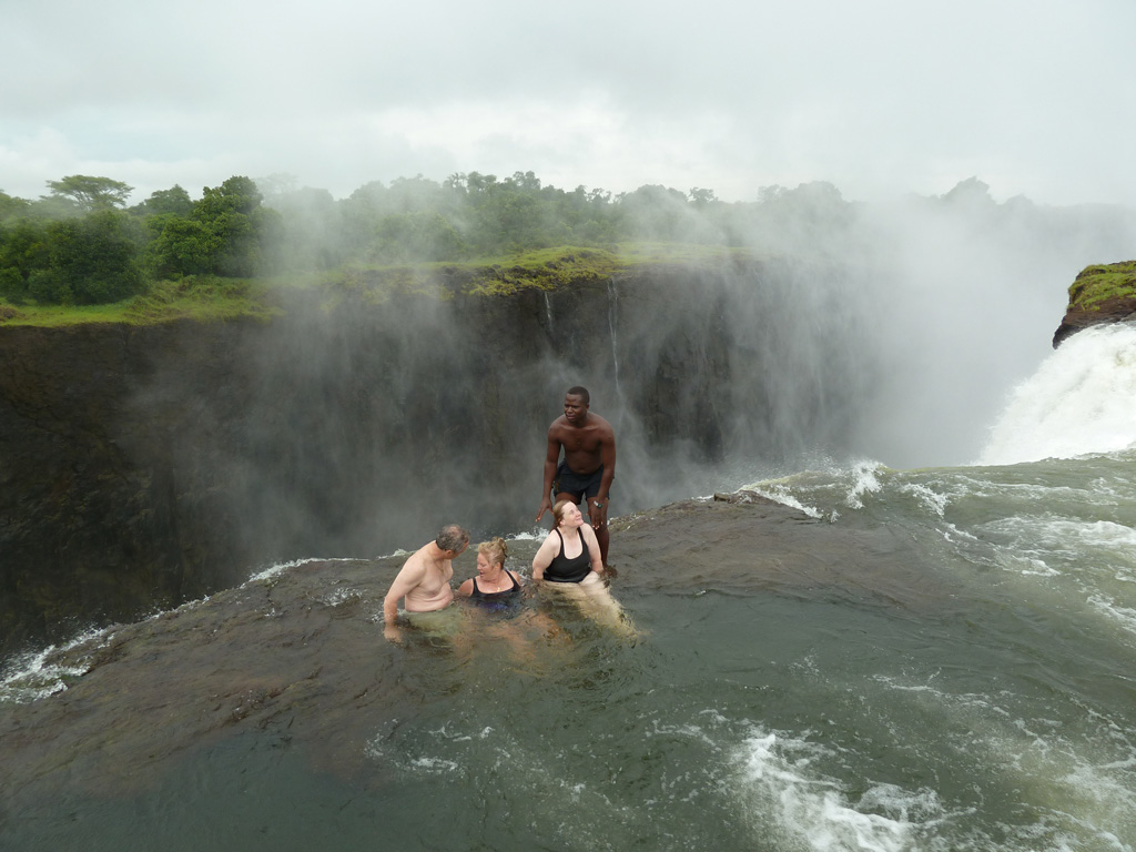 Когда в реке Замбези безопасный и достаточный уровень воды, обычно это в период с сентября по декабрь, то люди могут плавать в бассейне настолько близко к берегам, насколько это возможно, и не бояться наклониться за края бассейна или упасть в водопад.