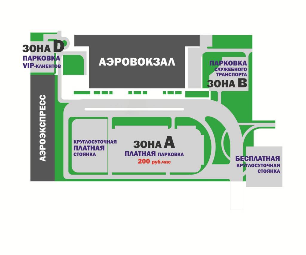 Первые 15 минут пребывания в зоне парковки бесплатны. Последующие оплачиваются по установленному тарифу. Оплата услуг парковки должна осуществляться непосредственно перед выездом в специальных терминалах для расчёта. Они расположены как на площади парковки, так и внутри здания аэропорта. Вставив карту в картоприемник, на экране отобразится сумма, необходимая к оплате.