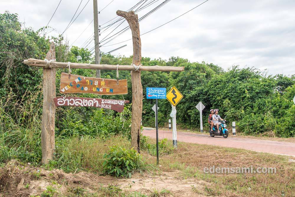 Вывеска с расстояниями до разных пляжей рядом с пляжем Ао Тиан. Такие вывески расположены повсюду, так что ориентироваться просто.