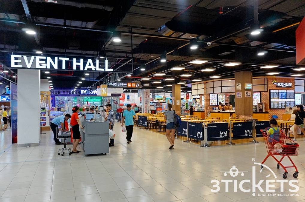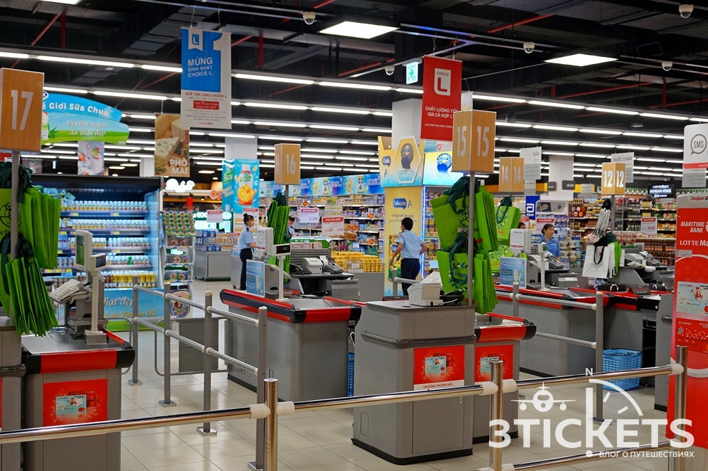 Огромный торговый центр Лоттэ открылся летом 2016 года. По расположению он намного удобнее для туристов, чем Биг Си, Метро или Coop Mart.