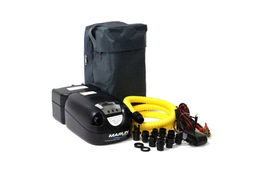 Лидирует в рейтинге электрический насос с производительностью 1000 л/мин, благодаря чему всего за десять минут можно накачать семиметровую лодку. В комплекте поставляется трёхметровый кабель питания. Разъём подходит под аллигаторного типа аккумулятор, а шланг имеет набор переходников. Для удобства переноски прибора и аксессуаров есть удобная сумка. После завершения накачки насос автоматически остановится, когда будет достигнуто выбранное давление.