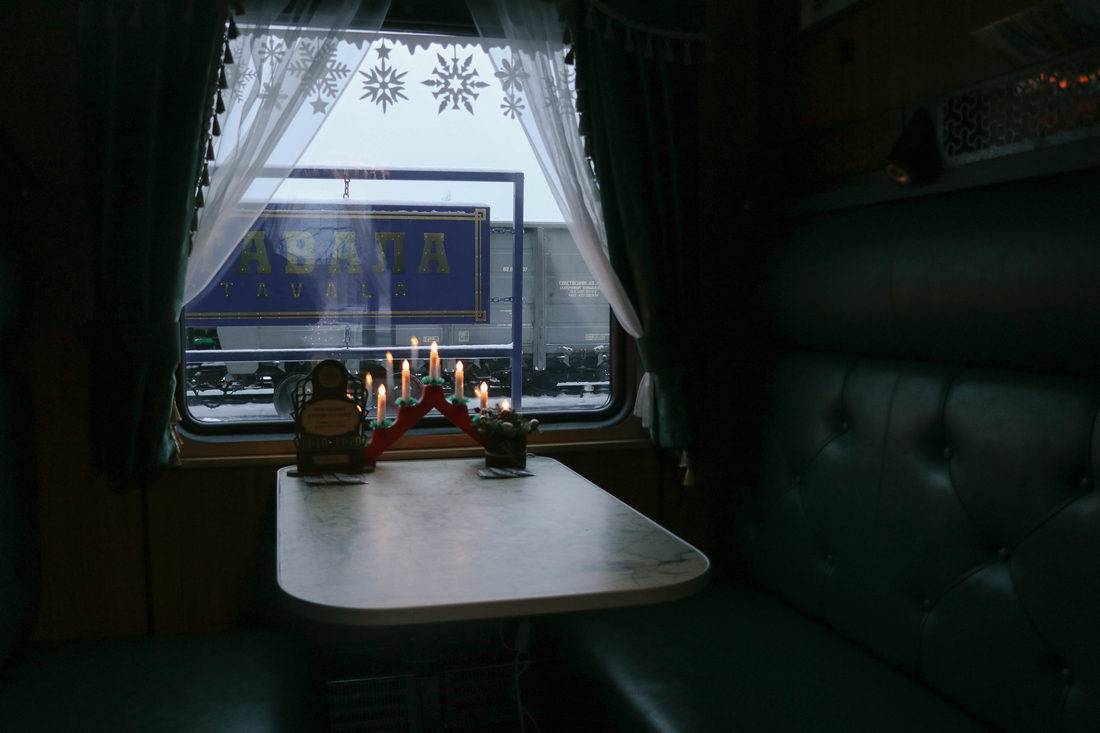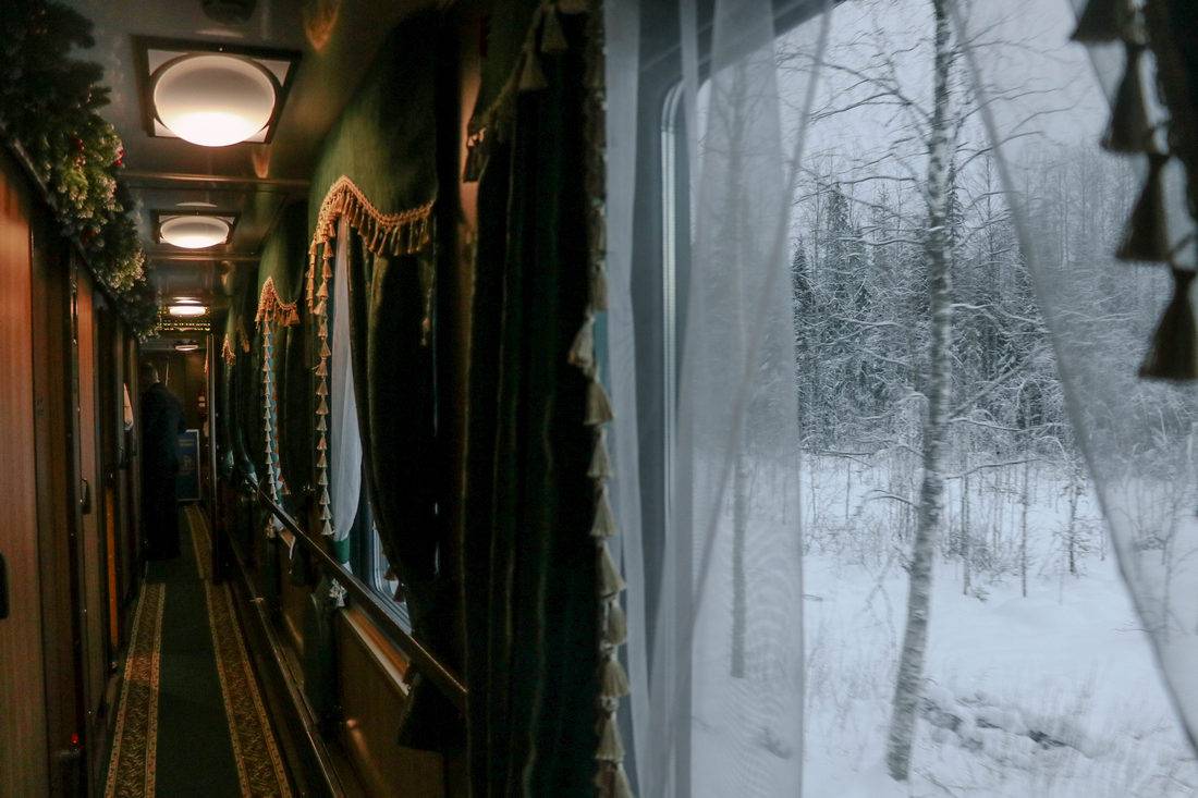 От Сортавалы до парка поезд идёт чуть больше часа. За это время можно посетить вагон-ресторан и специальный фото-вагон, где выдают костюмы и в исторических интерьерах делают красивые фотографии. Правда, если будет очередь, возможно, времени на фотосессию хватит не всем.