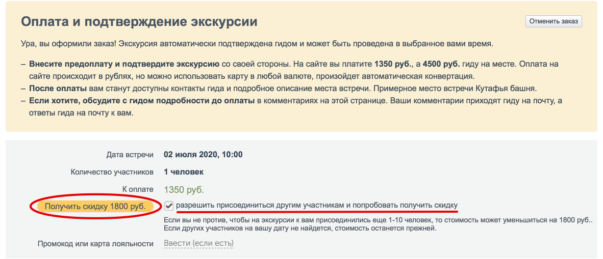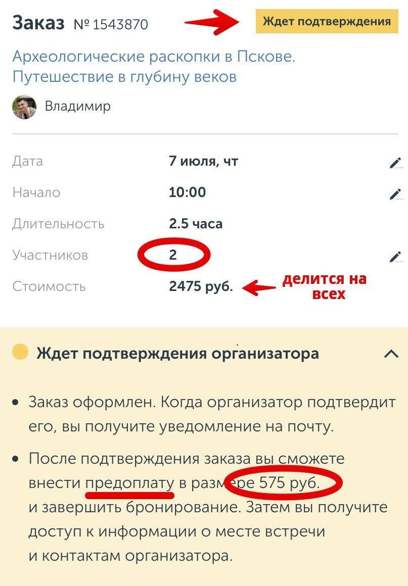 После нажатия «заказать» остаётся только оплатить. Или дождаться подтверждения гида и оплатить.