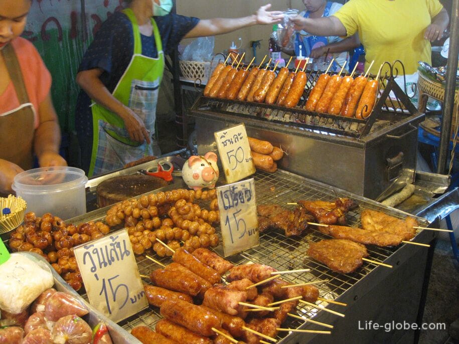 Цены тут демократичные, а ассортимент продуктов радует. К примеру, шашлык из курицы стоит всего 10 бат (20 рублей).Единственный недостаток — работает данный базар только по понедельникам и четвергам с 1