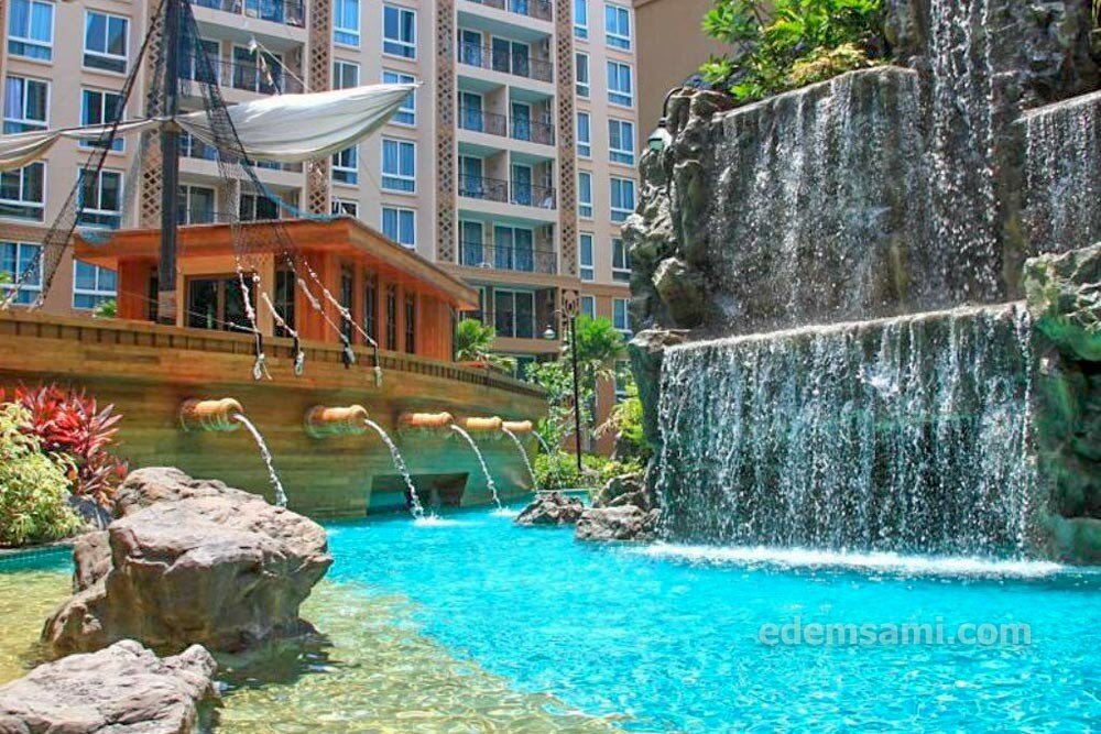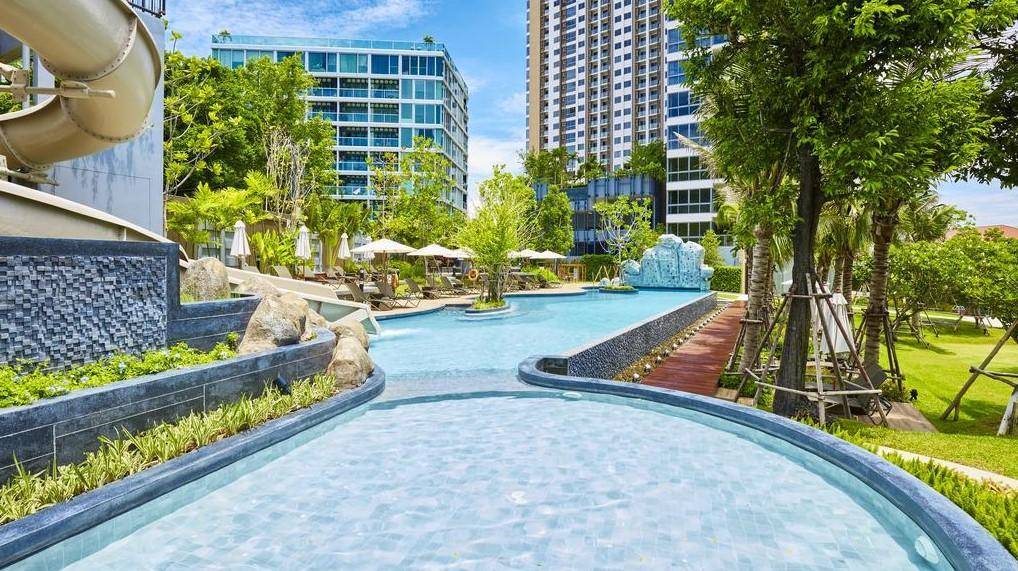 Самый известный кондоминиум на севере Паттайи, построен в 2017 году. Здесь большая территория с садами и лагунами, а бассейнов аж три. Два из них — с видом на море, расположены на 23 и 24 этажах. Квартиры с грамотным дизайном и окнами в пол.