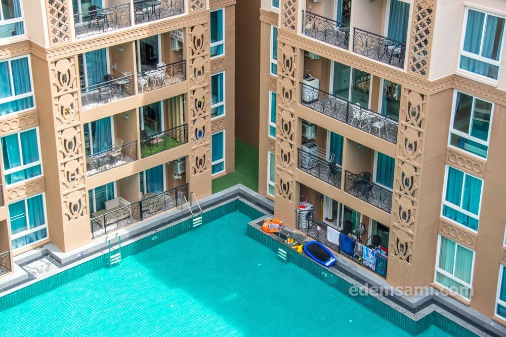 Не самый новый кондик, зато у моря, с большими квартирами, хорошим бассейном и удобным расположением около ТЦ Central Festival. В квартирах на удивление тихо. Отличный вариант снять недорогую квартиру в Паттайе в центре города.