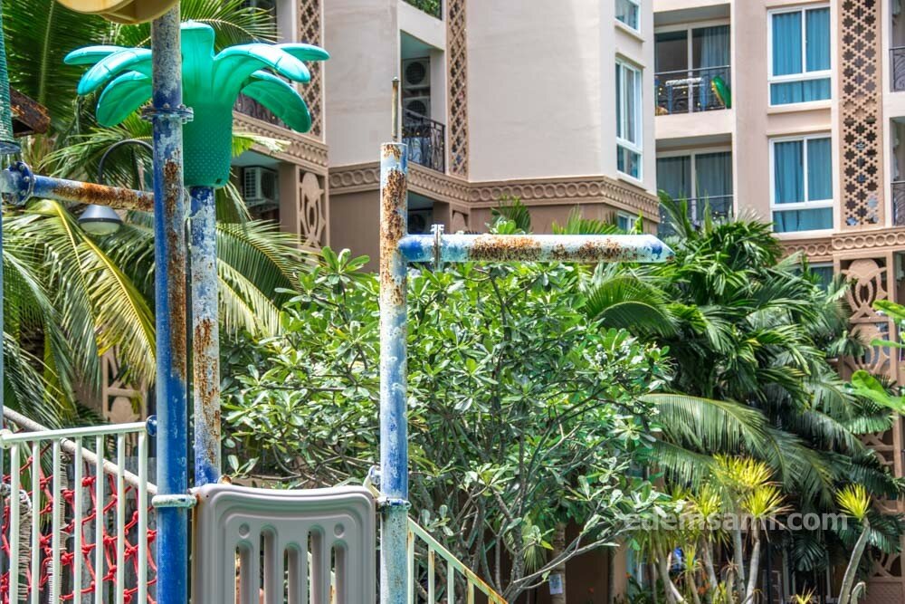 Жилой комплекс с большой зеленой территорией, чем могут похвастать далеко не все кондоминиумы северной Паттайи. Да еще и с выходом на пляж. Бассейн, сауна, фитнес – всё как надо. Храм Истины в пешей доступности, а вот до общественного транспорта далековато – минут 25 пешком.