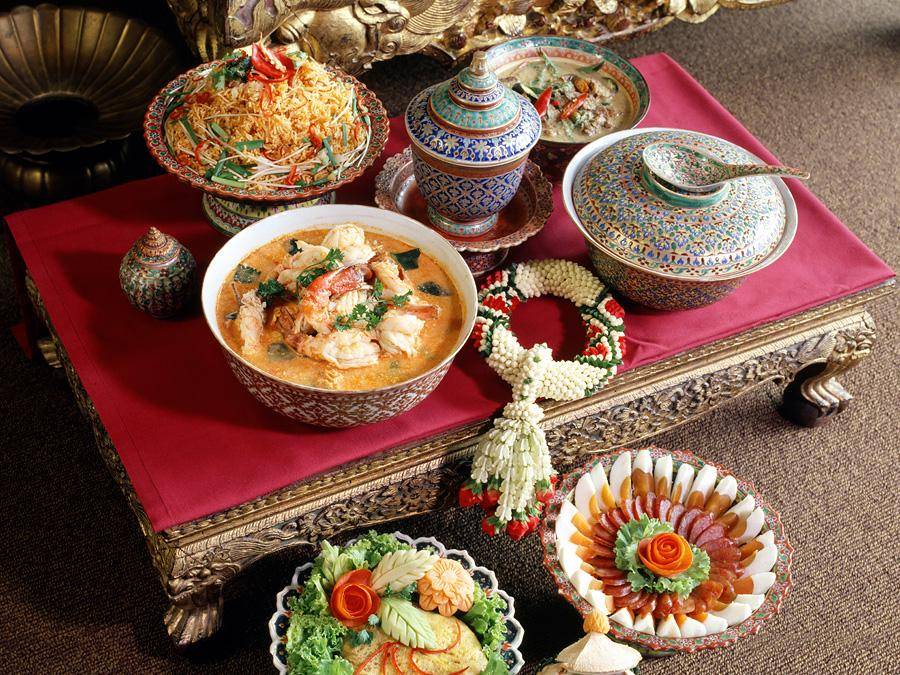 Во время празднования одного из трех торжеств жители Таиланда накрывают обильный стол с разнообразными блюдами. Меню включает: