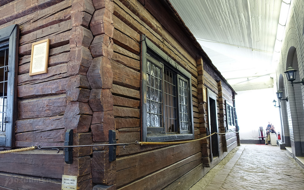 Внутри каменной постройки расположен совсем небольшой деревянный домик. На его окнах установлены решётки, через которые посетители могут разглядеть строгую обстановку жилища. Внутрь попасть нельзя. Всего в домике четыре помещения — сени, спальня, кабинет и столовая. В общем, минимальный набор комнат для проживания и работы.