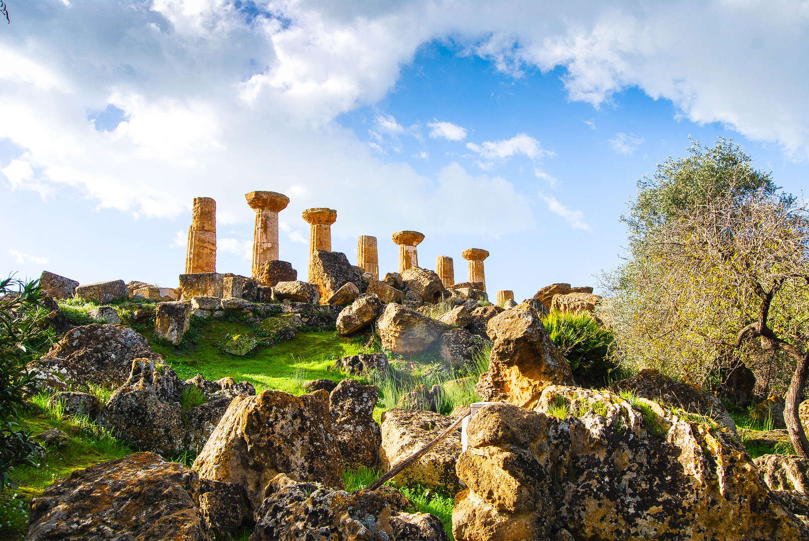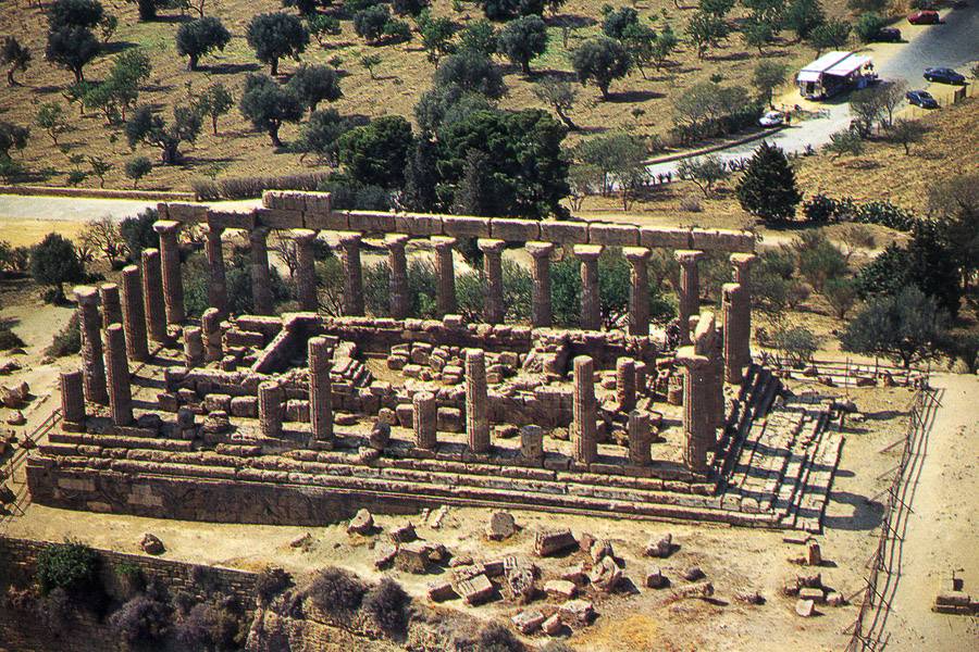 - Храм Зевса: строился как самый крупный объект в дорическом стиле. Предполагалось возведение 25-ти метровых колонн и статуй богов, окружавших храм. Помешало вторжение карфагенцев и землетрясение. Сегодня можно увидеть руины и скульптуру правителя Теламона с поднятыми руками.