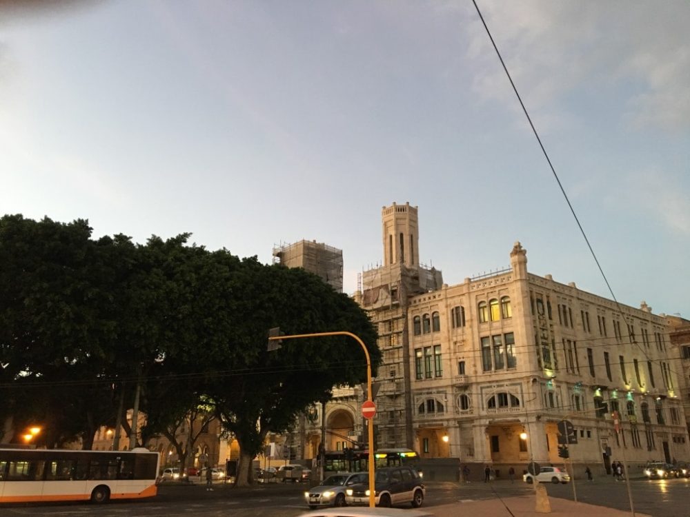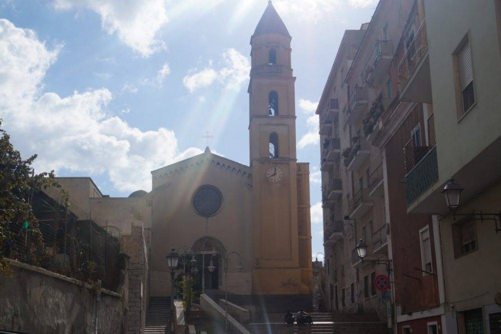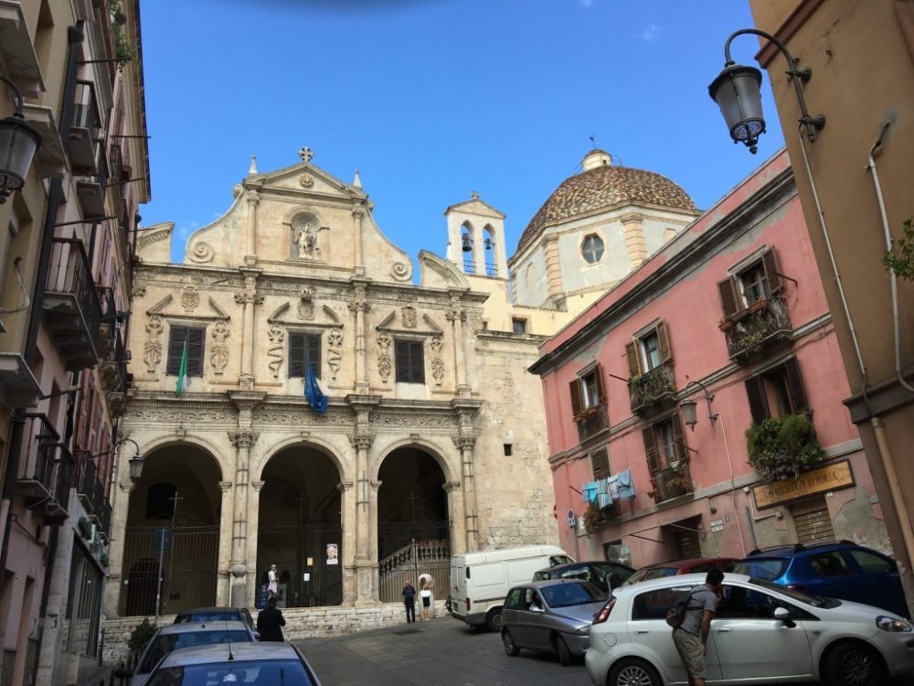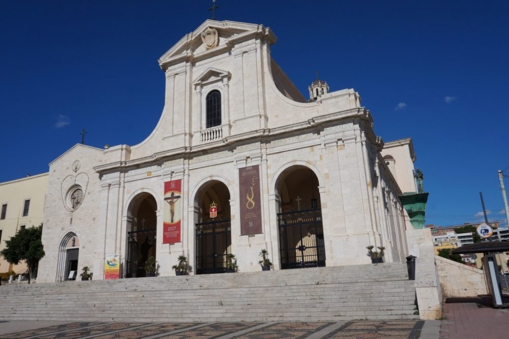 Это огромное светлое строение с двумя высокими башнями, а по совместительству – первая достопримечательность Кальяри, которую вы заметите, если будете добираться из аэропорта на поезде. Пропустить его тяжело. Когда в город приехали мы лично, там вообще гудела какая-то местная свадьба. Однако само здание предстало перед нами в не самом впечатляющем виде. Вот как-то так…