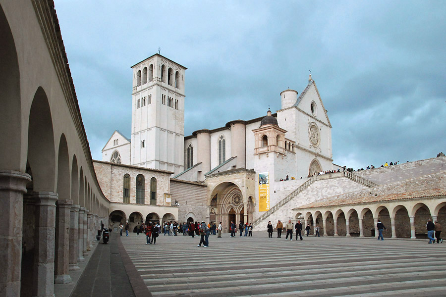 Храм Сан-Франческо находится на возвышенной местности, к которому построена широкая лестница. На террасе перед ней установлена статуя Мадонны. Недалеко от Сан-Франческо видно здание Бенедиктинского монастыря Сантиссимо Сальваторе. Он самый большой в городке, его строили почти 100 лет, с 1703 по 1791 гг.