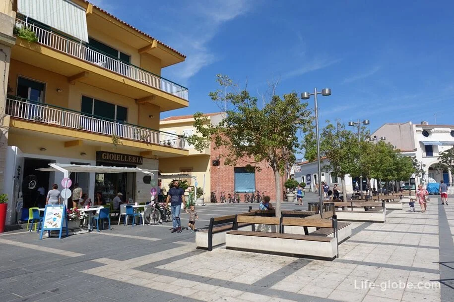 С восточной стороны, вдоль центральной набережной, можно видеть выстроившиеся в аккуратный ряд симпатичные виллы, большинство из которых являются летними резиденциями итальянцев.