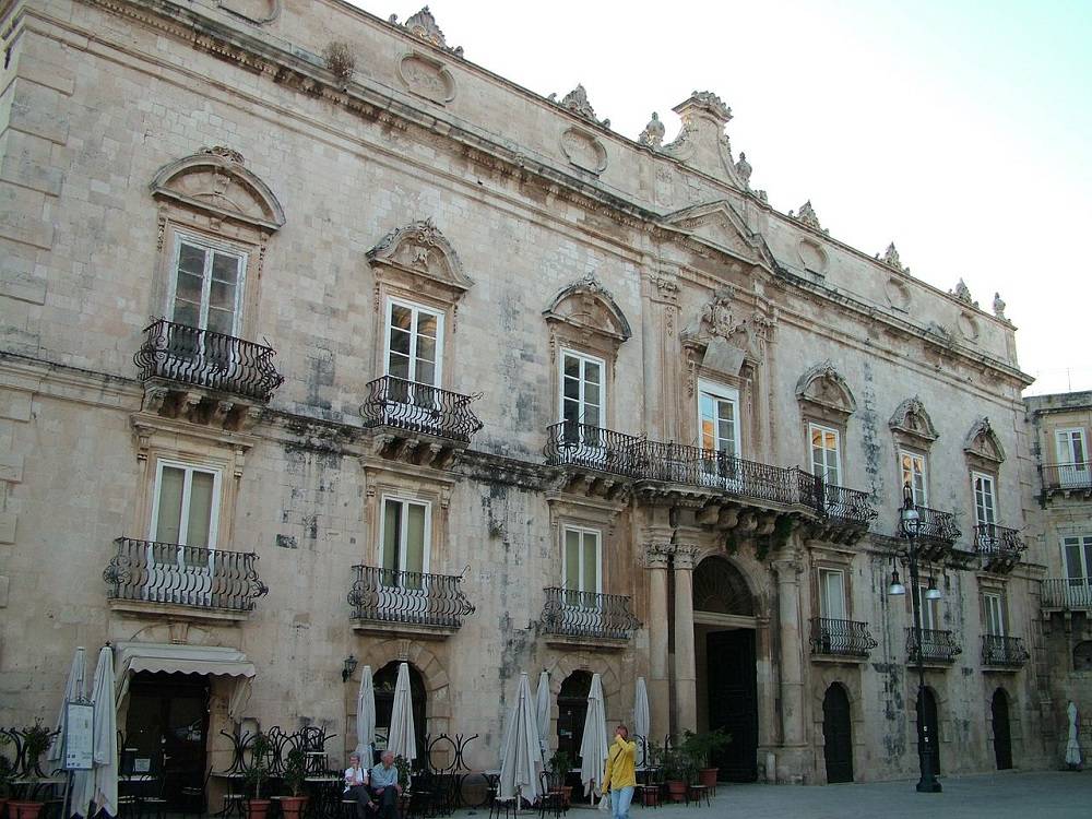 Средневековый дворец семьи Ареццо. Сейчас он считается одним из самых шикарных дворцов Сицилии. Его перестраивали множество раз, последний – в конце XVIII века. Таким он сохранился до наших дней. Пышное барокко с колоннами и скульптурами на фасаде. Части интерьера также сохранились, например, люстры и предметы искусства.