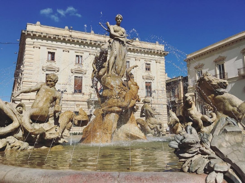 На площади Архимеда в самом центре стоит фонтан Артемиды, или Дианы. Его построил Джулио Москетти. Он окружил богиню тритонами и нимфами, а у самых ног высек бога реки Алфея. Одна из нимф – это Аретуза, возлюбленная Алфея. Миф об их любви лежит в основе другого памятника Сиракуз – источника Аретузы.