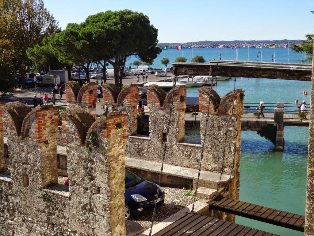 Одно из них — замок Скалигеров (Castello dei Scaligeri) — огромный форт, служивший военным портом веронской флотилии и защищающий город со стороны озера. Он был построен приблизительно в середине XIII века веронским властителем Мастино I Делла Скала.
